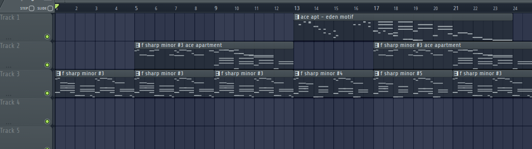 A look at Ace's Apartment song, with the bottom image being the composition that plays in Eli's perspective. Done by me in FL Studio.